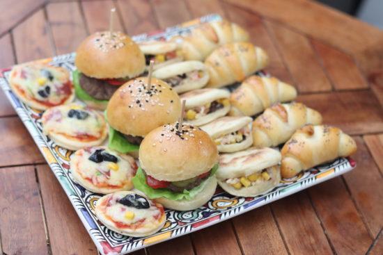 6. Oktober 2022 4 Party Snacks/ Fingerfood für Silvester/ Hamburger/ Pizza/ Croissants/ Pita Party Snack 0