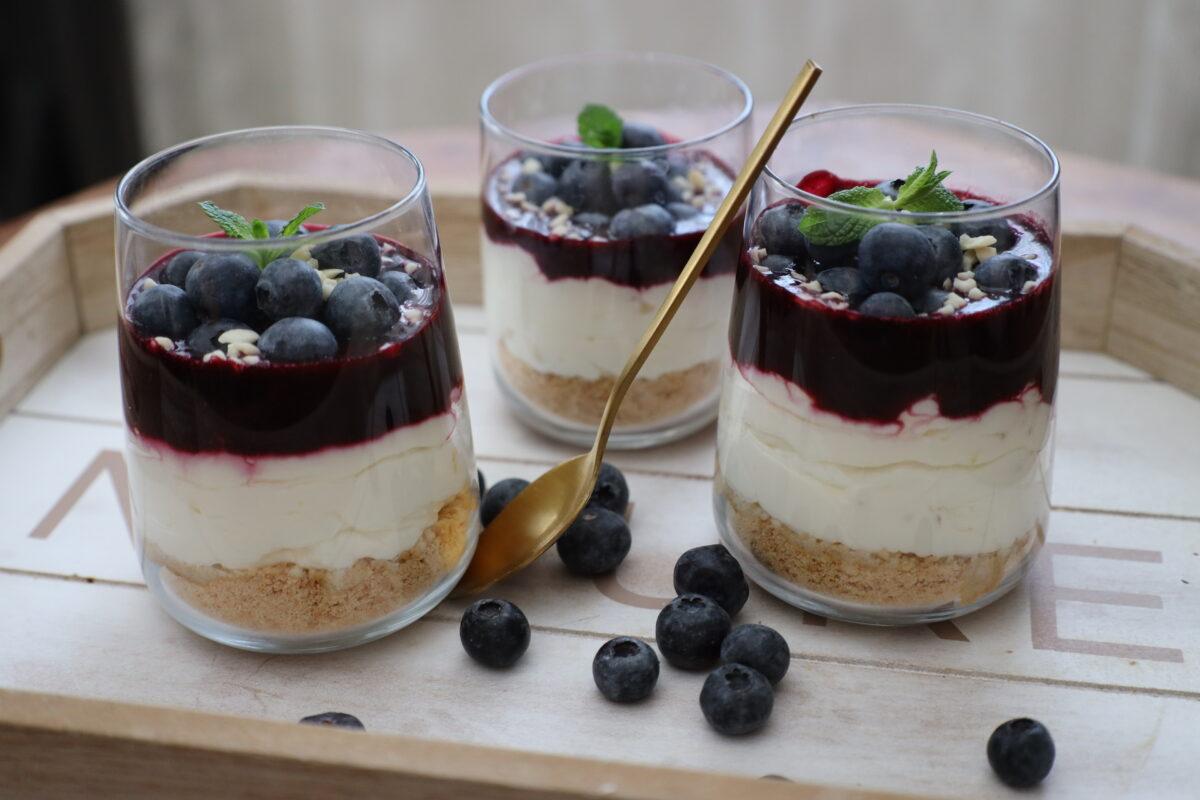 Früchtiges, leckeres und einfaches Heidelbeere Dessert im Glas. Ein Rezept für den Weihnachten oder für andere besondere Anlässe schmeckt einfach fantastisch mit 3 Schichten schnell zu zubereiten. Nach machen lohnt sich auf jeden Fall.